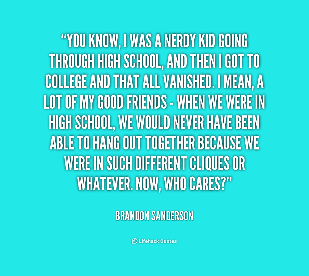 Web You know I was a nerdy kid going through high school and then I got to college and that all vanished. They never make sense. Web Brandon Sanderson 21.