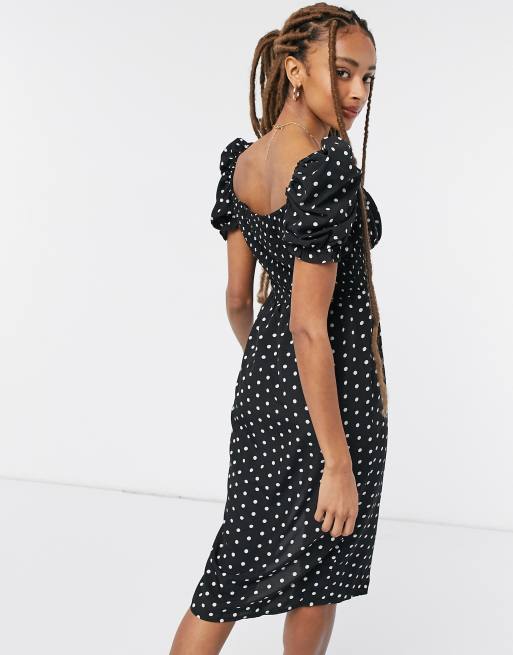 In The Style X Shaughna Puff Sleeve Sweetheart Neck Midi Dress In Polka Print Asos
