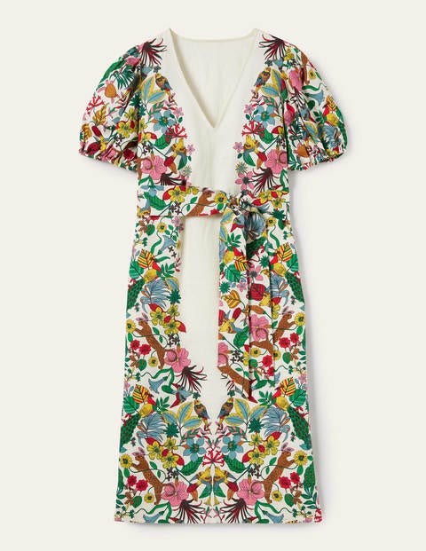 Puff Sleeve Linen Midi Dress Ivory Exotic Paradise Boden Uk